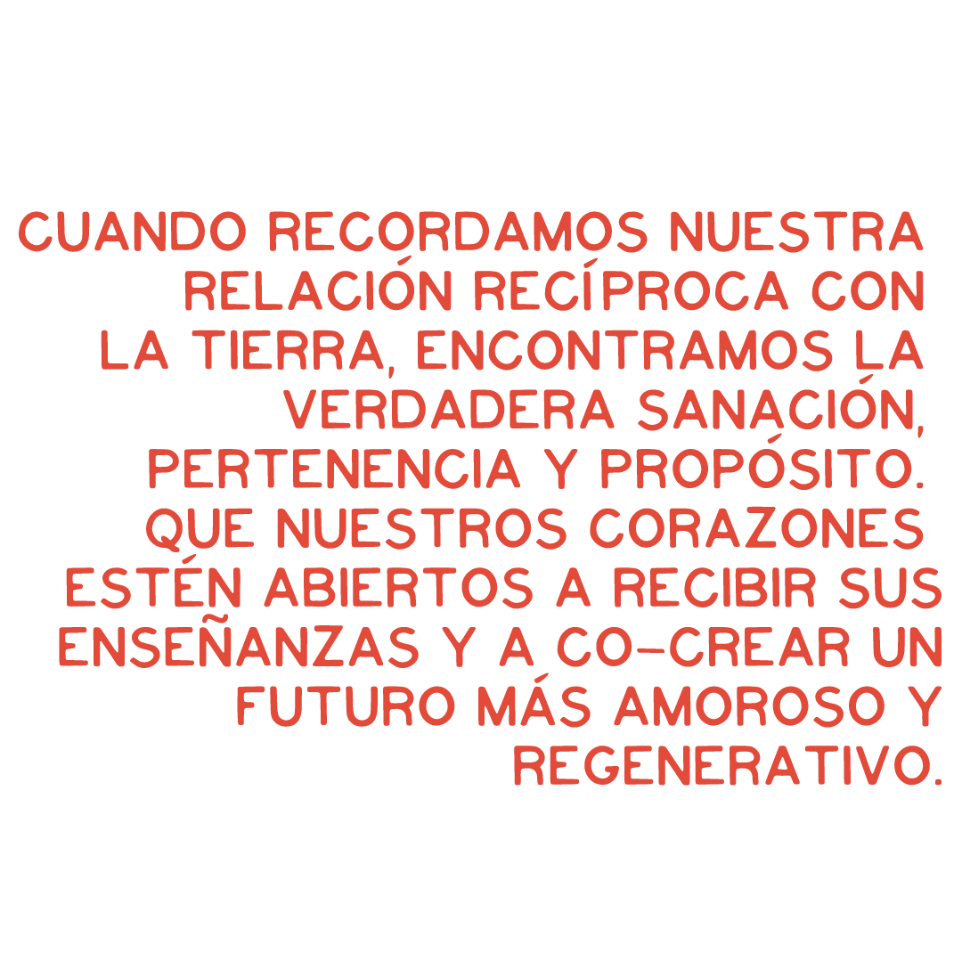 Este espacio es un llamado a tejer, en conjunto, una relación recíproca con nuestros parientes humanos y más-que-humanos. Se erige como un refugio para ENRAIZAR, CONTEMPLAR y ENTRELAZARNOS con la Tierra, los elementos, la comunidad y el Ser esencial que habita en cada una de nosotras mediante la MEDITACIÓN. Es un retorno y un reencuentro —a la Tierra y al corazón.