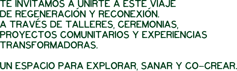 Se configura como un espacio de convergencia donde se entrelazan la conciencia, la tierra, la espiritualidad y la comunidad, con el propósito de fomentar procesos de regeneración tanto a nivel individual como colectivo. Este proyecto surge como una invitación a reconocer nuestra pertenencia a un entramado interdependiente, en el cual cada acción, relato e intención poseen un significado profundo.
